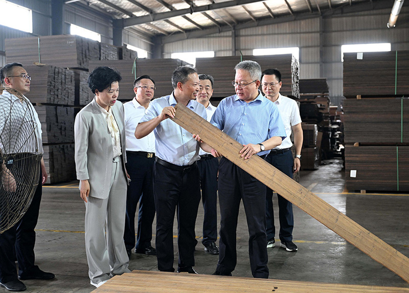 湖南省林業(yè)局黨組書(shū)記、局長(zhǎng)吳劍波一行蒞臨桃花江竹材考察指導(dǎo)